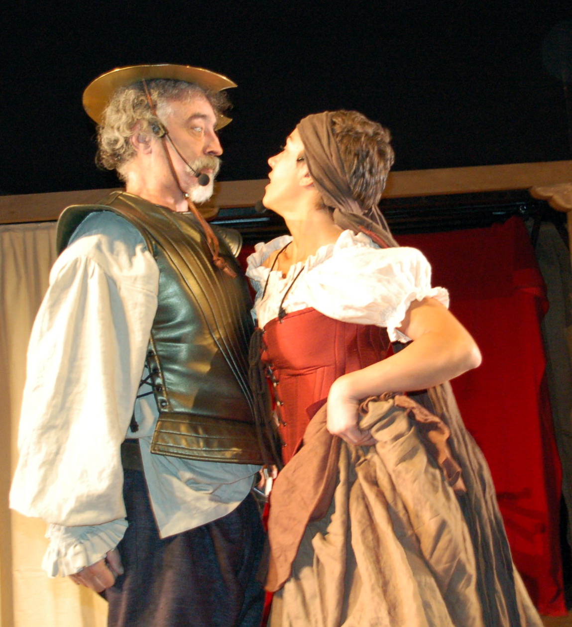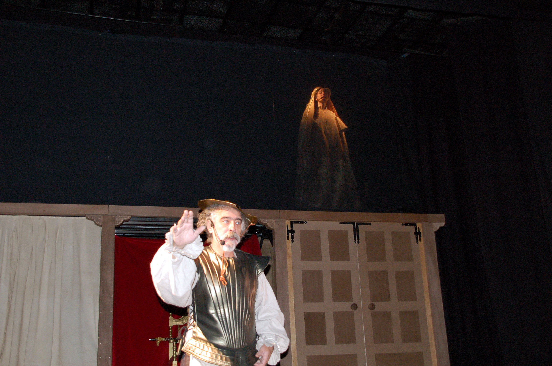 Dulcinea en un ser irreal creado por la imaginación de don Quijote proectando a la porquera Aldonza Lorenzo, que es representado por la misma actriz.